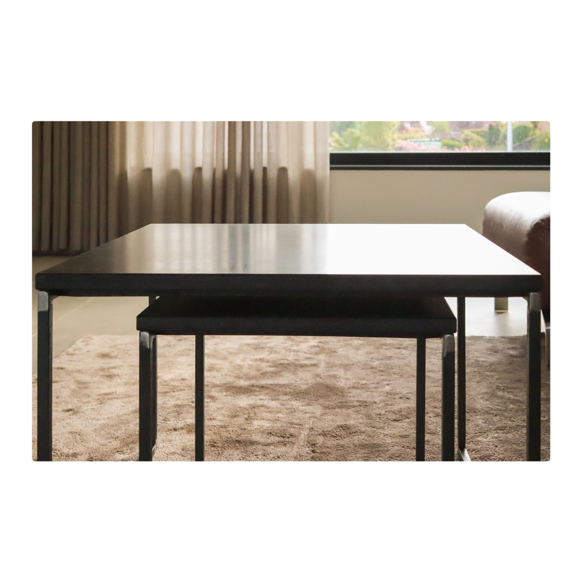 Salontafel set in graniet en staal